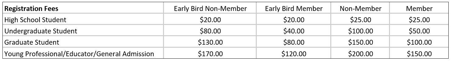 2025 Registration Fee Structure: